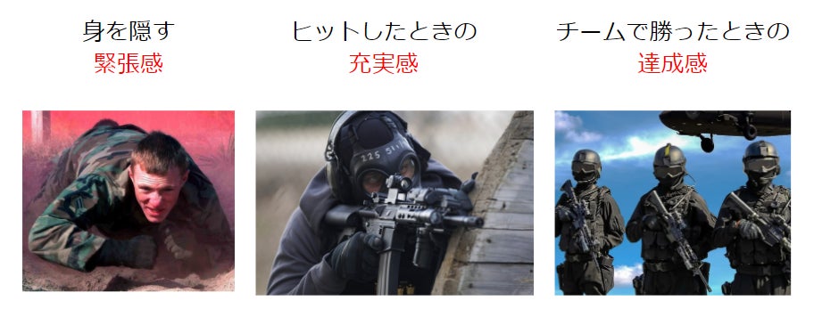 銃が好き、迷彩服で特殊部隊のような姿になれるのが好き、など人それぞれにサバゲーの楽しみ方がありますが、主としては下の3つが挙げられます。