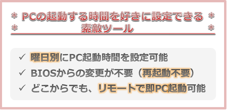 私自身、PCでTV録画をしており、毎日決まった時間にPCを自動起動してます。
