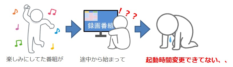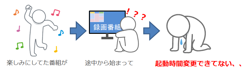 変更したつもりで、楽しみにしていた番組をいざ見ると、途中からでがっかり。