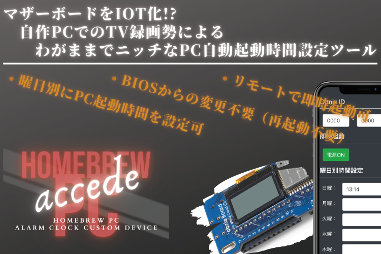 ProtoOut Studio スクール の卒業制作として、自作PCの起動時間をフレキシブルに設定(遠隔起動も)を可能にするプロトタイプ『HPC-accede』を制作しました。