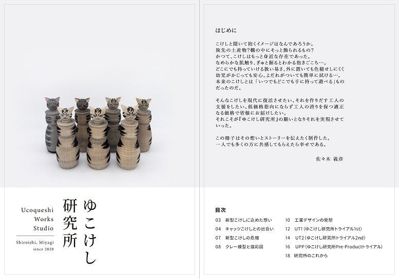 さて遅れてしまいましたが、のんびりと、でもしっかりと冊子の編集は進んでいます。ご参考までにこの写真は表紙をめくった最初の見開きページです。まだ校正前の段階で、目次は仮に書いてあるのですが、ほぼこの内容となります。ページ数は20ページほど、サイズは新作・猫型こけしよりちょっとだけ大きいB6版を予定しています。できるだけ写真を多く載せるようにしたいと工夫を重ねているところです。数百枚ある写真から厳選、さらに不足分を追加撮影するなどしており、レポート文章とは違う雰囲気に仕上げていきます。