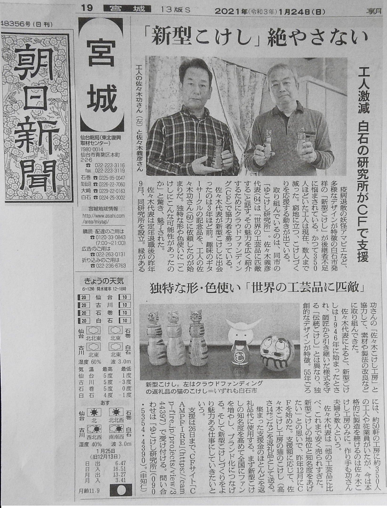 1月24日付けで、朝日新聞社の朝刊(宮城県版)に活動が載りました。
