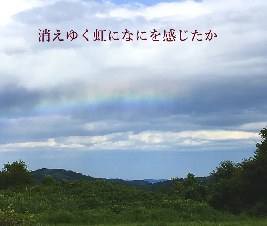 隣町への道すがらに峠で消えゆく虹を発見。綺麗だなと思いつつも、新型こけしは消滅させたくないと活動を始めたことを改めて思い起こしていました。