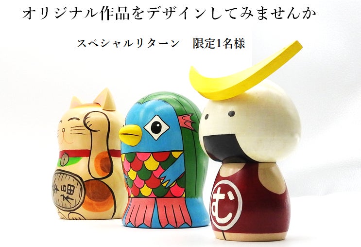募集終了日はいよいよ残り1日となりました‼ スペシャルリターンの支援者殿が現れて戴けると一気に目標達成です‼ 皆様のご協力がありここまでくることができました‼ ご支援いただきましたこと、改めて感謝申し上げます‼▶  スペシャルリターン 限定1名  100,000円 ◀オリジナルのデザインを功工人と一緒になって市販できるところまで試作を繰り返します。間に合わせることができるギリギリの日程ではありますが、 5月1日に開催予定の全日本こけしコンクールでお披露目したい考えています。自分でデザインしたこけしを世の中に出してみたい方、デザイナー経験のある方で取り組んでみたい方、感性のあり無しに関係なく創作に強い興味がある方、など制限を設けず応募をお待ち申し上げております。▶  追加リターン 2種類  各限定3名 ◀新聞掲載により直接の問い合わせがあり、ご希望があると思われるリターンを佐々木功工人に相談して急遽追加しました。最終日だけのメニューとなってしまいましたがご支援をよろしくお願いします。皆さんの期待に応えられるよう、最後まで全力を尽くして取り組んで参ります。