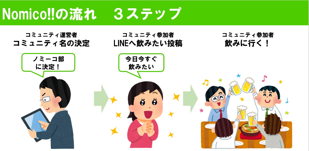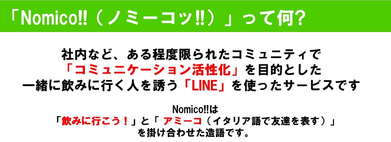 上記課題を少しでも解決するLINEを使ったサービス「Nomico!!」のご紹介をさせていただきます!