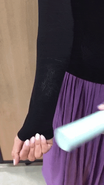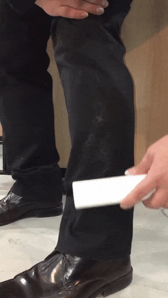 高密度繊維のブラシ部分でそっとスライドするだけで服やソファに着いた毛を取り除くことができます。
