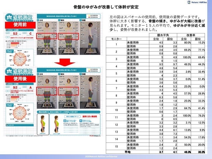 効果測定を続ける中で、スパオールには体幹が安定するという効果も測定されました。スパオールを身につけているだけで体幹が安定し、重心・バランスの移動(ブレ)が劇的に軽減されます。意識しなくても体が自然と踏ん張るため、転倒防止として使えます。