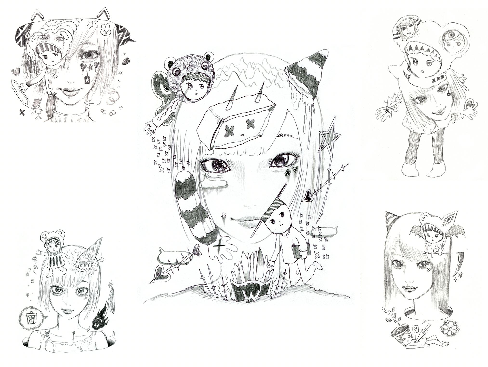 「カワイイ+ハゲシイ絵」を主軸とし、音楽や言葉に影響を受けながら制作を続ける。また、各地のミュージシャンと交流し、フライヤー等の制作も行い、エレキギターでのパフォーマンスやイベント企画も行う。山形在住で作家活動を続け、2013年、30歳で上京。上京後「原宿・渋谷・秋葉原」が好きになり、「アイドル」と「自撮り」に心を奪われる。2014年より自撮り画像を絵でデコレーションするコラボレーションワークを制作・発表する。