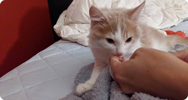 2020年11月3日現在、その投薬も56日目を迎えました!MUTIANのお陰で投薬翌日から目に見えて回復し、今では投薬前と変わらない元気を取り戻しています。しかし投薬も残すところ1ヶ月を切ったところですが、いち会社員の自分にとって資金繰りが厳しいのも事実です。体重も3kgですがこれまでの増量を考えるとあと500gは増えそうです。せっかく繋がった命、キティの命をどうしても守りたいと思い、勝手ながら皆様にご支援のお願いをさせて頂きたくこのプロジェクトを立ち上げました。
