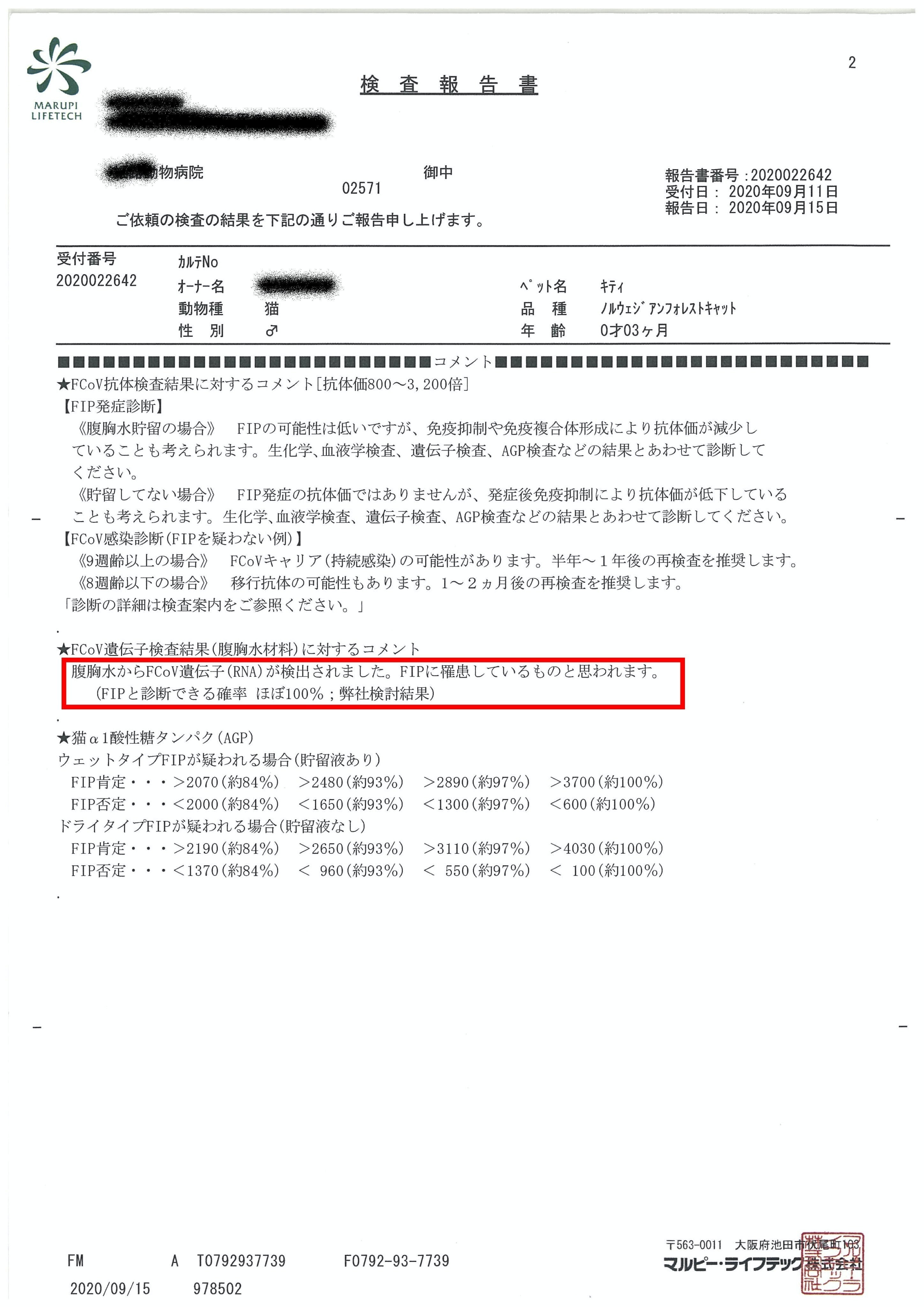 以下が実際に6日後に出た診断結果です。