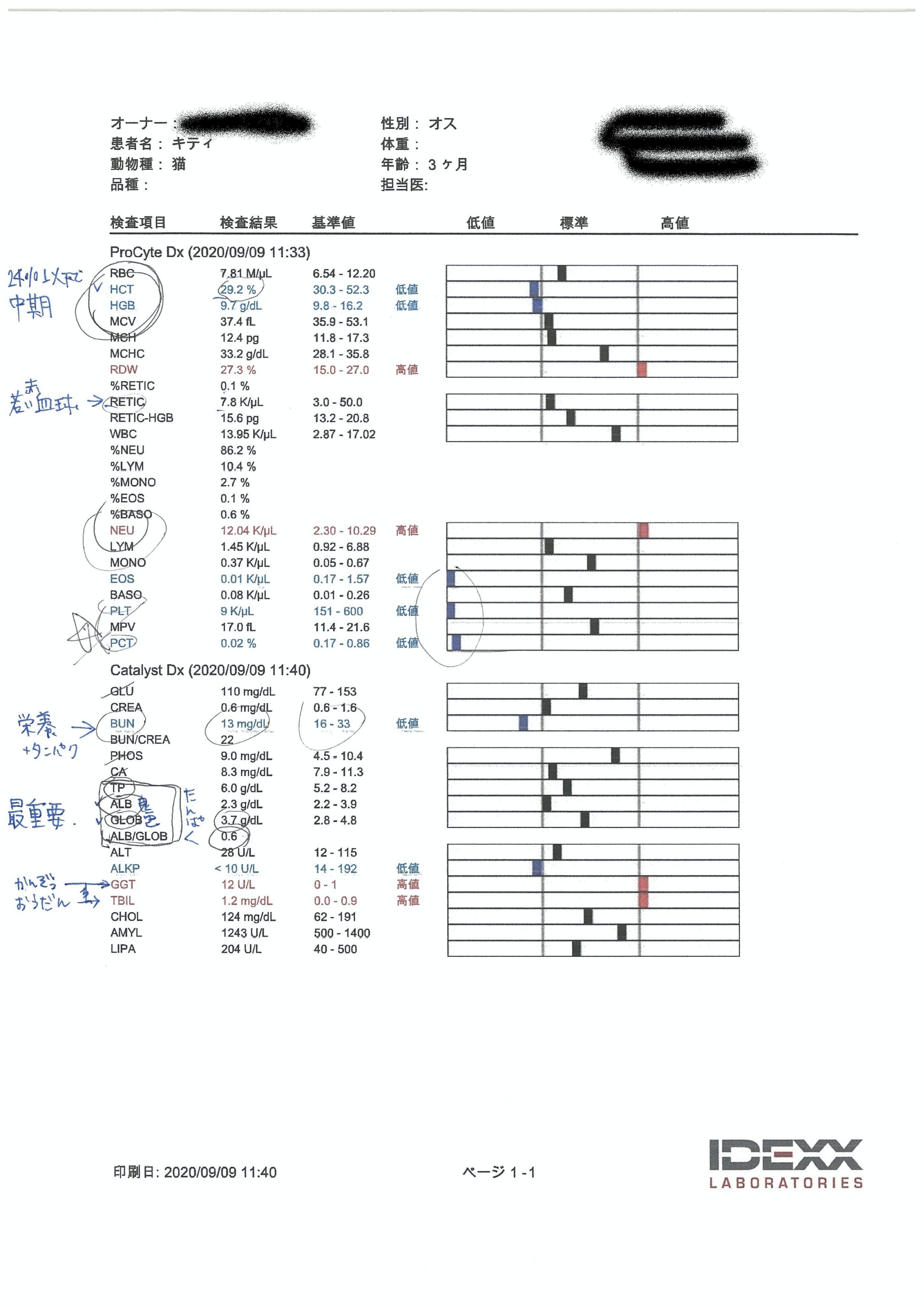体重によって投与量は変わりますが、例えば3kgの猫ちゃんで1日300mg(=約7500円)の費用がかかります。体重増を考えなくても単純計算で63万円の投薬費が必要です。普通の会社員である私のお給料では通院検査も含め100万円近い費用の工面はかなり厳しい面がありました。悩みに悩みましたが検査結果を待つことも危ういキティのかけがいのない命にはかえられないと決心し9月9日から投薬を開始しました。