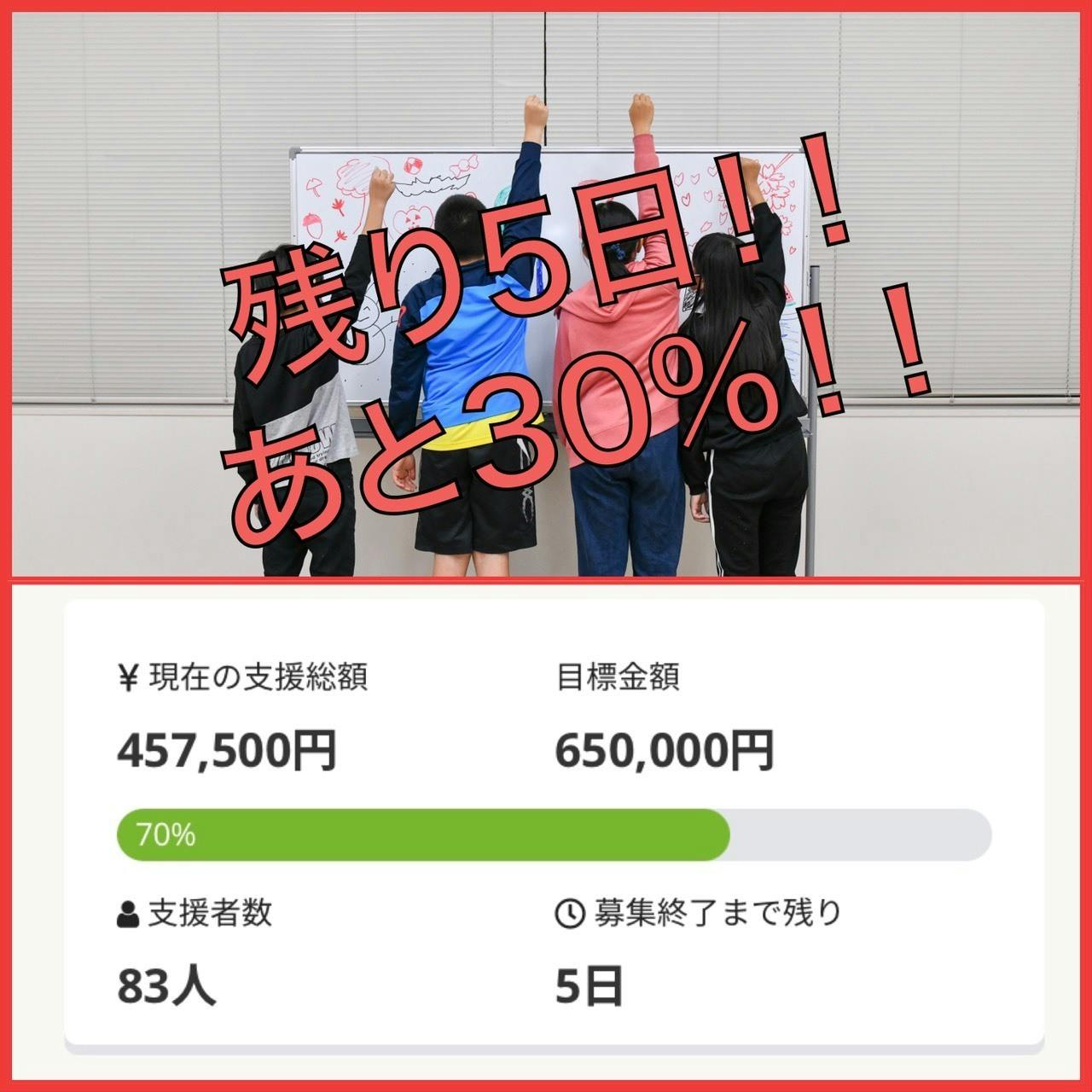プロジェクト終了まであと5日となりました。今までのご支援、ご協力ありがとうございます。