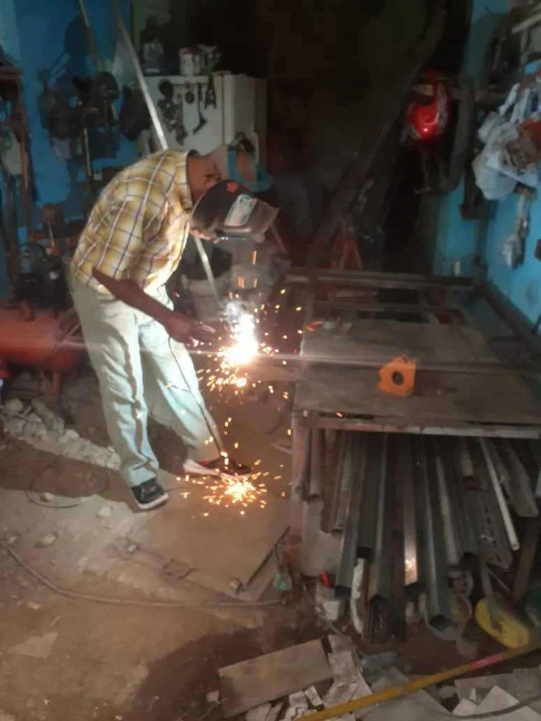 支援金が届き、バスケットゴールを作り始めました!