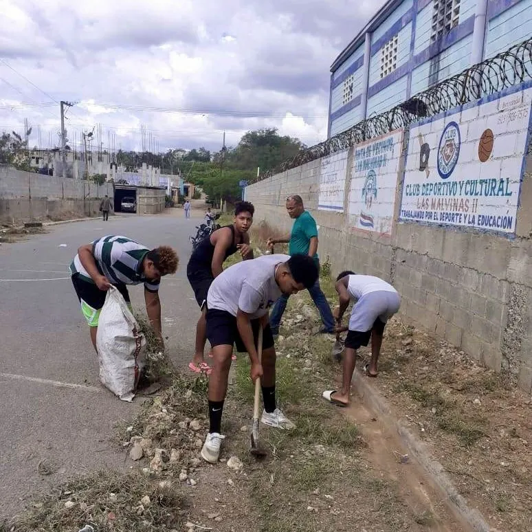 若者たちを集めて、バスケットコート・バレーコートの掃除や測量をしてくれました!
