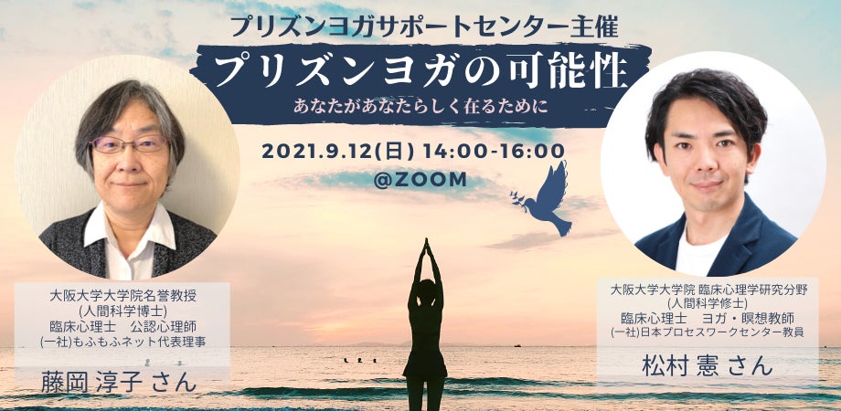 2021/08/14 17:49みなさまいつもプリズンヨガサポートセンター(PYSC)の活動へのご理解とご協力を賜り、ありがとうございます。お待たせいたしました!2020/12/19~2021/01/17に実施したクラウドファンディングキャンペーン「全国の刑務所で受刑者のヨガ実践をサポートする仕組みを作りたい!」でお知らせしたオンラインイベントの詳細が決定しました。同キャンペーンで10, 000円以上のご支援をいただいた方々には、リターン特典としてこのイベントの無料参加権を差し上げております。参加方法については8月1日にPYSCからご対象者様にお送りしたメルマガの本文をご覧ください。もしもメルマガが届いていない場合や不明点がある場合は、お手数をおかけしますが、PYSCまでEメールでお知らせください。Eメール:pyscjapan@gmail.com(@を半角の@に置き換えてご使用ください)----------------------------------------------------------------------------【プリズンヨガサポートセンター設立2周年記念イベント】 プリズンヨガの可能性 〜あなたがあなたらしく在るために〜---------------------------------------------------------------------------- ”確かな一歩を踏んで、社会復帰できるよう、自分を知り、 苦しくてもありのままを受け止め、 心に常に余裕を持って生きていけるようになりたいです” (受刑中のヨガ・瞑想実践者からのお手紙より) *プライバシーを守るため一部編集しています受刑に至る人々の中には、生育の過程で虐待、貧困、いじめ、差別など様々な生きづらさを経験してきた方がたが多くいます。プリズンヨガサポートセンターは「受刑者の方がたが加害・被害の連鎖から脱し、本来の人生を歩むのにヨガや瞑想が役立つのではないか?」というアイディアから設立に至りました。私たちの活動は ”受刑者が本来実現したい生き方を後押しすることで、犯罪という手段を経ることなく受刑者の社会復帰を促進することができる” と考える、「グッドライフモデル」という考え方がベースになっています。今回はグッドライフモデルに詳しく、刑務所などで教育プログラムの実施やスーパーバイズに携わられている藤岡淳子さんと、臨床心理士で個人や組織の成長や変容を多面的・統合的にサポートする各種セッションを行われているヨガ・瞑想教師の松村憲さんをお招きし、ヨガ・瞑想の実践が受刑者の更生に与える可能性を考えます。【日 時】2021年9月12日(日)午後2時~4時【開催方法】Zoom(開催後2週間に限り録画視聴が可能です)【参加費】1,000円* 活動への寄付付きチケットもお選びいただけます。*「全国の刑務所で受刑者のヨガ実践をサポートする仕組みを作りたい!」で10, 000円以上のご支援をいただいた方々には無料参加権を差し上げています。【申込方法】Peatixよりお申込みください。【主 催】プリズンヨガサポートセンター 【登壇者】講師:藤岡 淳子さん一般社団法人もふもふネット代表理事、大阪大学大学院名誉教授、博士(人間科学)、臨床心理士、公認心理師 少年鑑別所、少年院、刑務所で20年間、非行少年・受刑者の査定と教育に携わった後、2002年4月から大阪大学大学院人間科学研究科教授。2021年4月から名誉教授。専門は、非行・犯罪心理臨床。現在は、児童相談所、児童自立支援施設、刑務所などで、非行や犯罪行動のある少年と成人の教育プログラムの実施およびスーパーバイズを行っている。主な著書:「非行少年の加害と被害」、「性暴力の理解と治療教育」、「非行・犯罪心理臨床におけるグループの活用」(いずれも誠信書房)、「アディクションと加害者臨床」(金剛出版)、「治療共同体実践ガイド」(金剛出版)など。もふもふネットホームページ 講師:松村 憲さん米国クリパルヨガ公認教師、認定プロセスワーカー、臨床心理士米国プロセスワーク研究所 (プロセスワーク修士)大阪大学大学院 臨床心理学研究分野(人間科学修士) (株)BLUE JIGEN 代表取締役 バランスト・グロース・コンサルティング株式会社 取締役(一社)日本プロセスワークセンター ファカルティ日本トランスパーソナル学会 副会長社会福祉法人 有隣協会 理事松村憲さん 公式ホームページ 著書:「日本一わかりやすいマインドフルネス瞑想"今ここ"に心と体をつなぐ (BABジャパン)翻訳書:「プロセスマインド:プロセスワークのホリスティック&多次元アプローチ」アーノルド・ミンデル著 (春秋社)」、「プロセスワーク入門」ジュリー・ダイアモンド他著 (コスモス・ライブラリー)」コーディネーター:松浦亮輔(プリズンヨガサポートセンター代表)【主催者連絡先】Eメール:pyscjapan@gmail.com(@を半角の@に置き換えてご使用ください) もっと見る