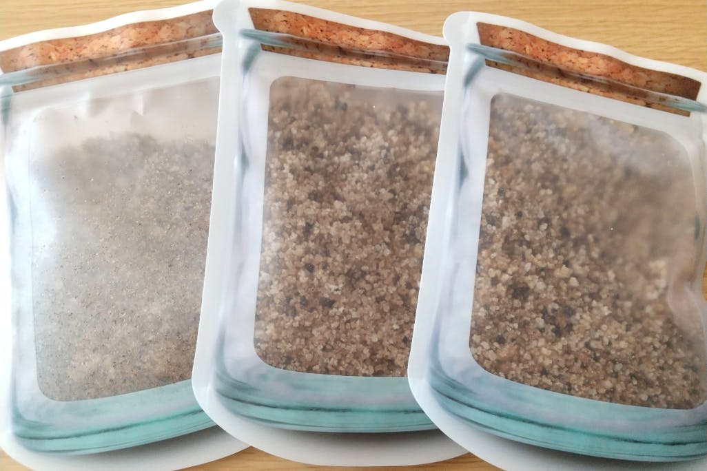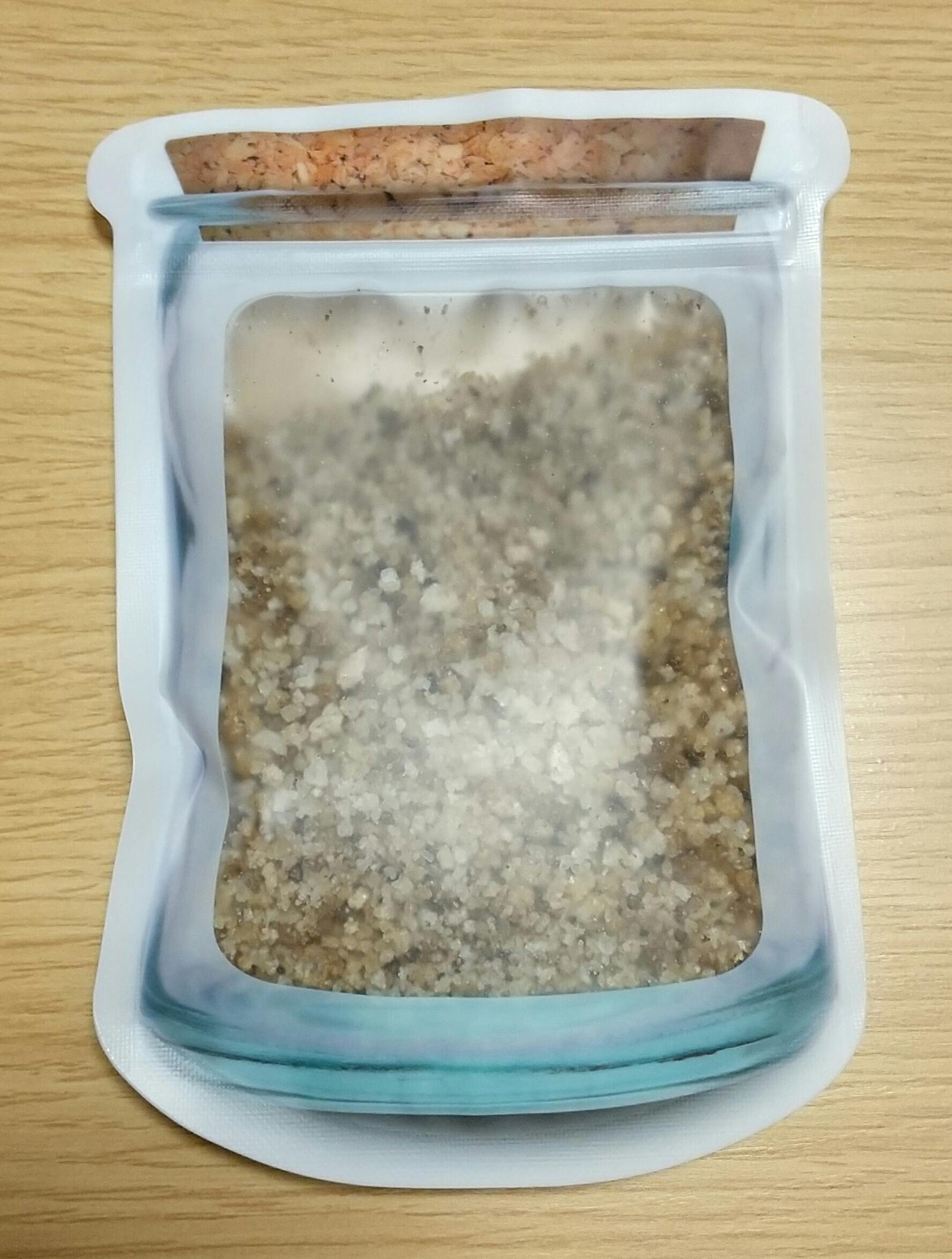 そこで、単位あたりの表面積が大きく、かつ、素材の香りが無いものとして塩を導入。今に至っております。