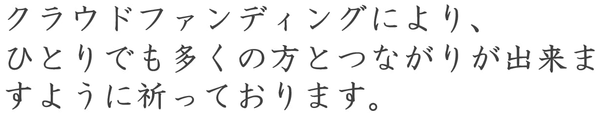 このクラウドファンディングを通じて、プロジェクトを知ってくださった方々とも繋がれることを願っております。