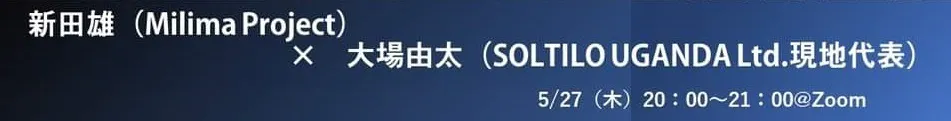 青年海外協力隊としてウガンダで農業の活動した新田雄とウガンダのプロサッカークラブのGMとして活躍する大場由太さん(青年海外協力隊モンゴルOB)とのオンライントークイベント。