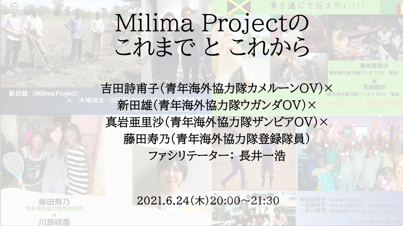 ミリマプロジェクトオンラインイベントvol.5はミリマプロジェクトのこれまでとこれからに焦点を当て、ミリマのこと、メンバーのことお話します!