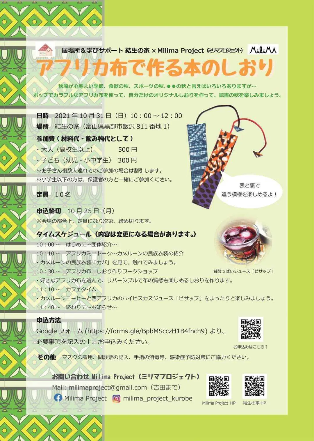 10月31日(日)10:00~結生の家にて、イベントを行います。