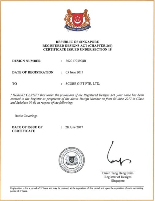 KOKOROフラスクは、シンガポールを拠点におくSCUBE GIFT PTE. LTDの下で運営しています。当社の組み立て技術は、2020年に台湾と中国で特許を取得し、他の多くの国でも特許出願中です。また、当社の真空断熱技術は2017年にシンガポールで特許を取得しました。
