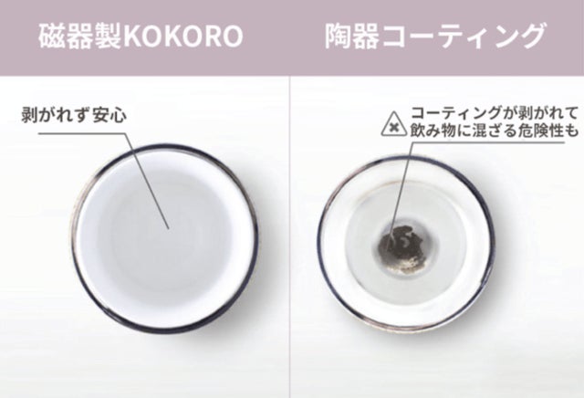 KOKOROフラスクの内側は100%高品質の磁器。コーティングが剥がれる心配はありません。