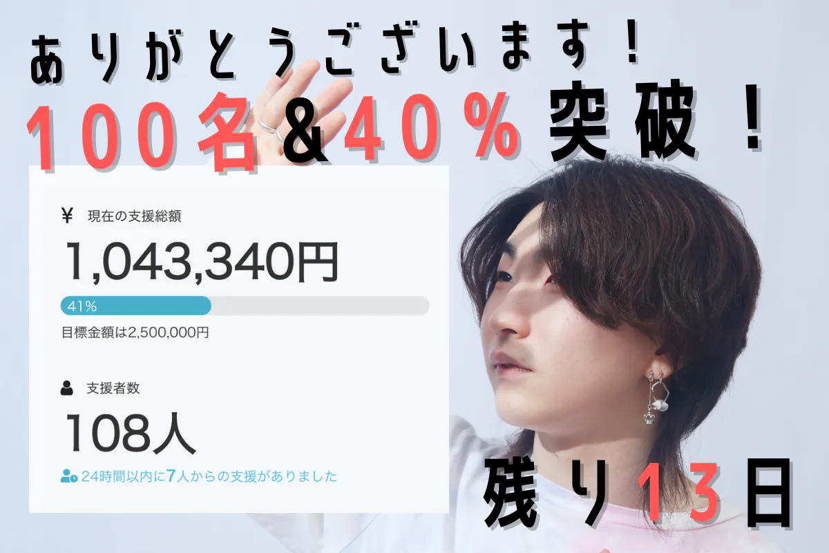 HAYATO KURATAのクラウドファンディングが100名&達成率40%を突破しました!