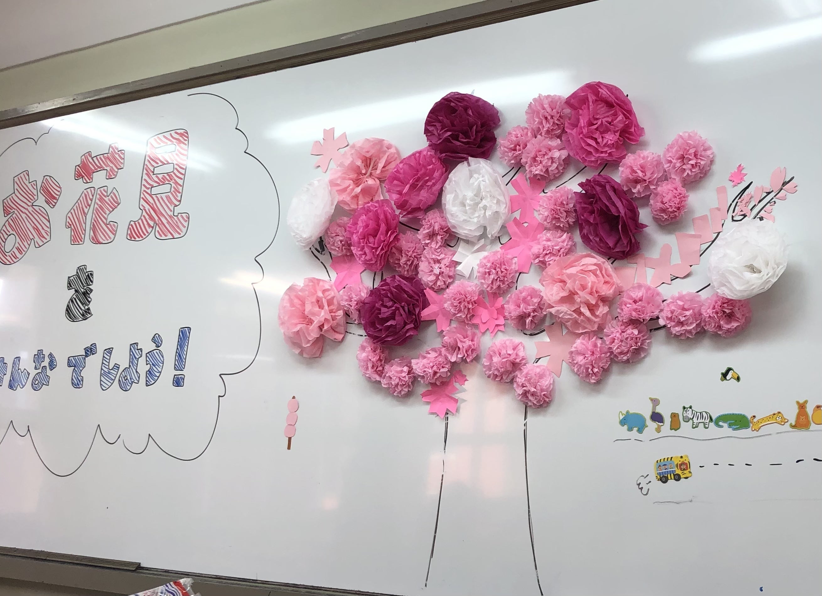 皆さん、こんにちは!今回は、月1回、主に美作大学校内で行っている、ウキワクフレンドについてお話ししたいと思います!(学生の日程などにより開催出来ない月もあります。)このイベントは、学生が土日などに月1回程度、里子さんを預かる託児のようなものです。ウキワクの目的は、里親さんへのレスパイトケア(休息の時間を設けてもらう)や里子さん同士の交流、社会体験の場を提供していくことです。具体的には、その月ごとにテーマを決めて、工作活動等を行っています!上の写真は、今年4月のウキワクです。この時は、4月といえば桜!ということで、「お花見をみんなでしよう!」というテーマで、子ども達が協力して桜の花を作ってくれました!年齢層もバラバラの子ども達が、学生と協力し、思い思いの桜の花を作り1本の素敵な桜の木が出来ました!その他にも、5月6月は母の日・父の日ということで、お母さん、お父さんに絵などをプレゼントしたり、2月のバレンタインには、例年であればお菓子作りもしていたのですが、今年は、コロナ感染対策の為、市販のお菓子のラッピングを子ども達が1からデザインし、手作りで行いました!今後も、子ども達が毎月楽しめるテーマや内容を学生で考えていきたいと思います!
