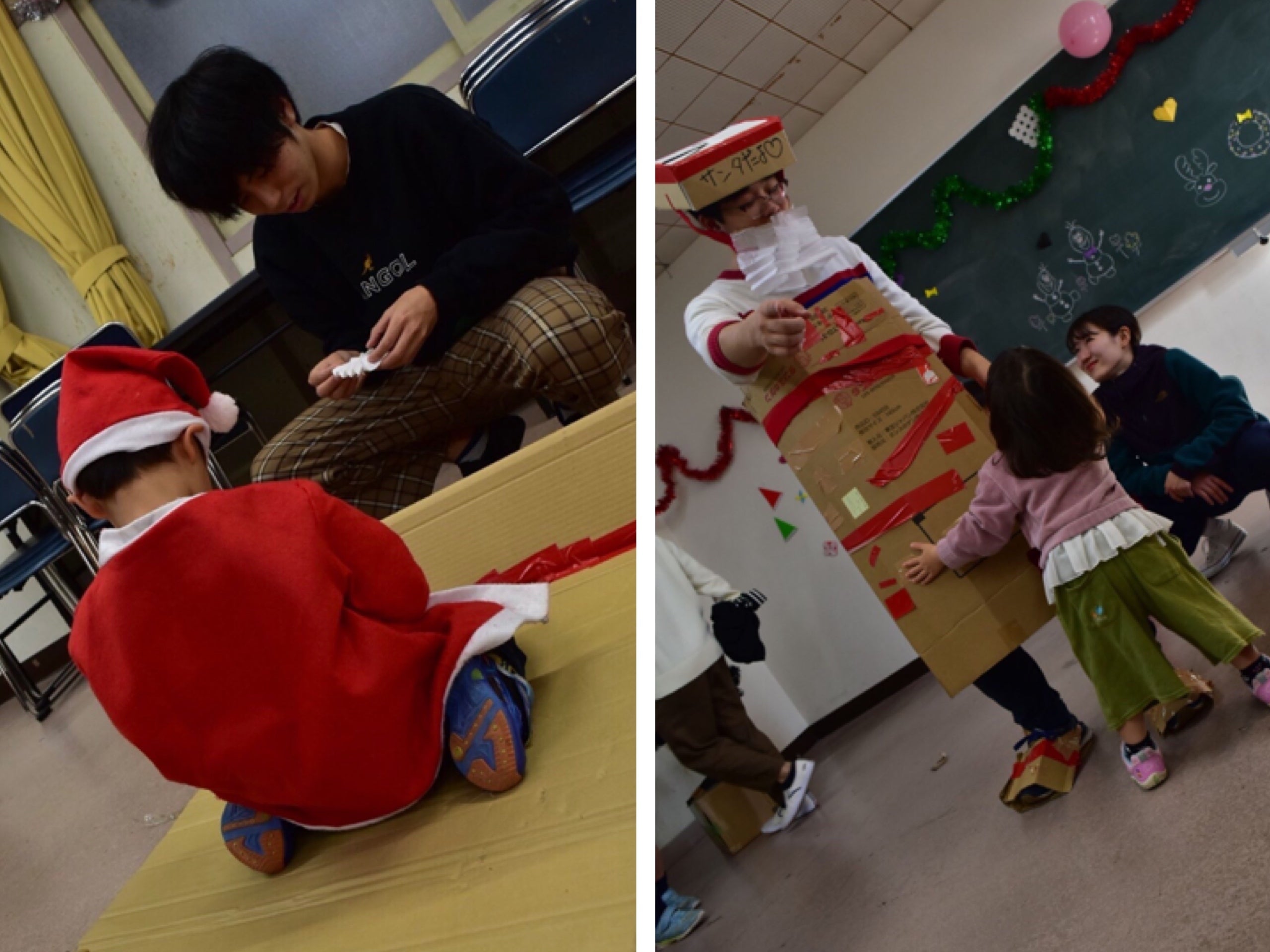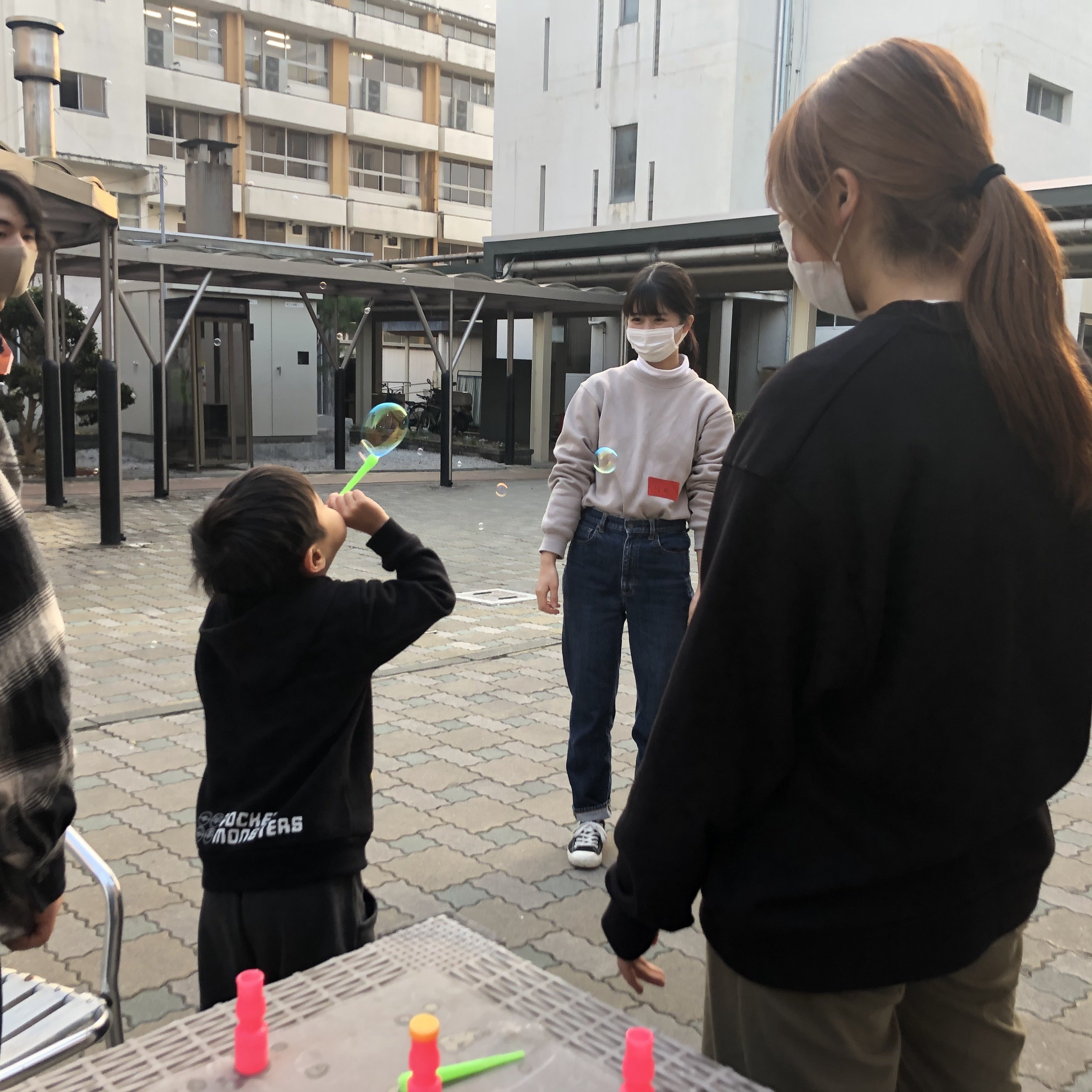 ウキワクフレンドでは、月に1回程度、里子さんを預かり、学生とともに社会体験や相談、学習支援、レクリエーション、スポーツ活動を行っています。この活動は、これまでの成長過程の社会体験不足を補い、自己肯定感を高めることを目的として行っています。また、里親さんに少しでもほっと息をつくことができる場所を提供したいと思い、里子さんだけの単独参加を原則として活動に取り組んでいます。昨年9月には子どもたちとお月見団子づくりを行いました。作る途中では里子さんが自分からお皿を並べたり、何を手伝うか聞いたりと率先して動き、自主性がみられました。また昨年12月にはウキワクを兼ねたクリスマス会を行うなど、その月ごとのイベントに沿う内容を行っています。