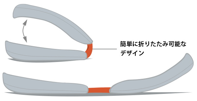 特許出願中のソールテクノロジー(EZ-Bend)は、ソールの中央部に特殊な素材とデザインを採用しています。旅行中、ハイキング中、外出先でも、Drymileシューズを簡単に折りたたんで収納することができます。