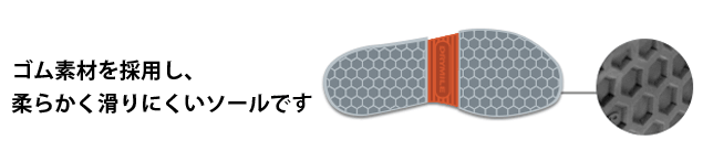 ソールには滑り止め素材を使っているので、雨や雪の中を歩くときに便利です