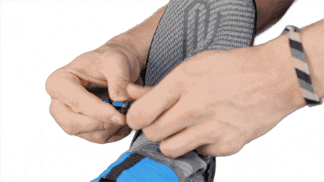 特許取得済みの多機能クイックリリースバックルにより、DRYMILEのシューズを素早く簡単に固定することができます。紐部分をベルトやリュックに引っ掛ければ省スペース