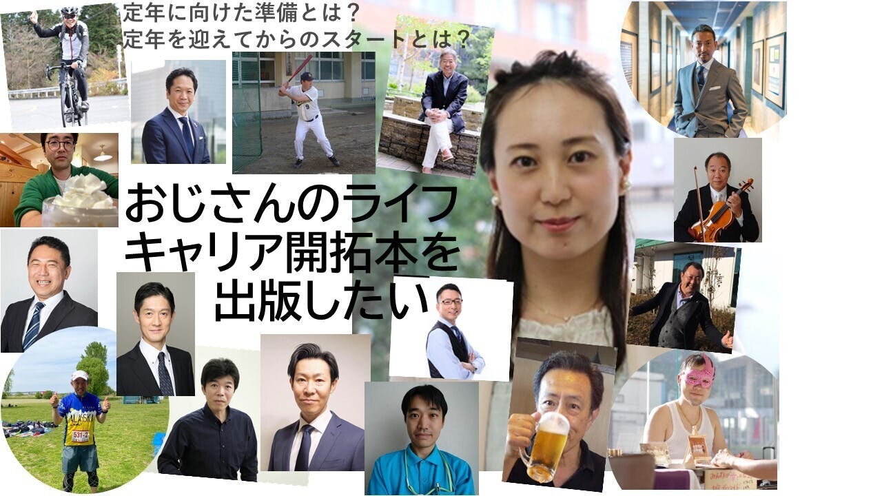 そうです、「おじさんのライフキャリア開拓本を出版したい」のいの文字のところです。ベストを着てお顔だけこっち向いている方です。
