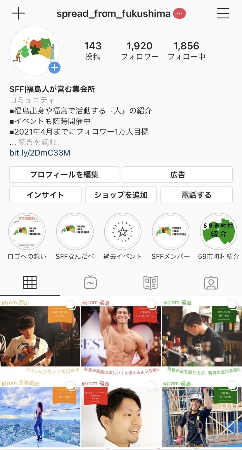 今年5月から立ち上がったSFFは、『福島県を一つに繋ぎ、全国・世界に発信する福島限定のプラットフォーム』です。現在、福島県民・出身者をInstagramを中心としたSNSで140名近く紹介させていただき、SNSを通じて繋がりを作っています。