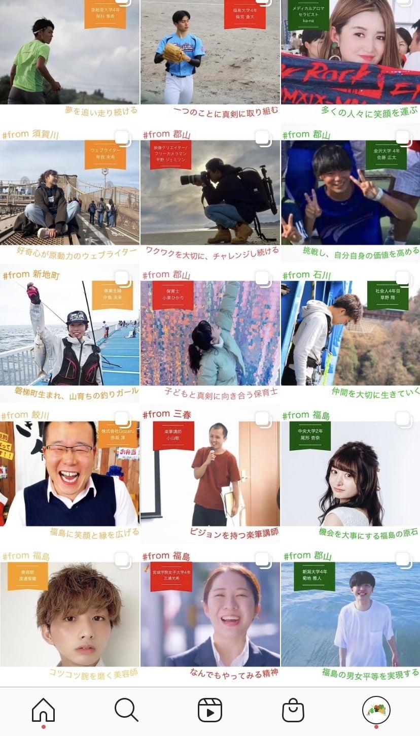 現在、約140名の福島県民・出身者の方をInstagram上で紹介させていただいております。「福島にこんな人がいたんだ!」と知ってもらうことを第一の目的にしています。