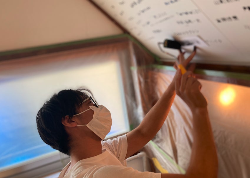 こんにちは!ご無沙汰しております。ローカル×ローカルのイッテツです。GWは日本在住の台湾、オランダ、中国、日本など、たくさんの方がいらっしゃいました。今はご時世もありますが、一旦落ち着いている南伊豆です。さて、本日やっとアーティスト赤池完介さんとクラウドファンディングのリターン「宿に名前を刻む」を実施しました。真ん中にあるのは、私とあなたの掛け合わせ、ローカル×ローカルを象徴したアイコン。グッドバイブス マークです!どんな感じになった方は、、、ぜひ宿で確かめていただけると幸いです!そのほかにも、グッドバイブスTシャツ限定盤/冒険の書などのリターンは発送中!ぜひ、南伊豆に、宿に思いをはせていただけると嬉しいです。宿のご予約を受け付けております。ぜひ、お越しください!予約サイト:https://www.chillnn.com/177ece8d490378/plan#hotelMenu