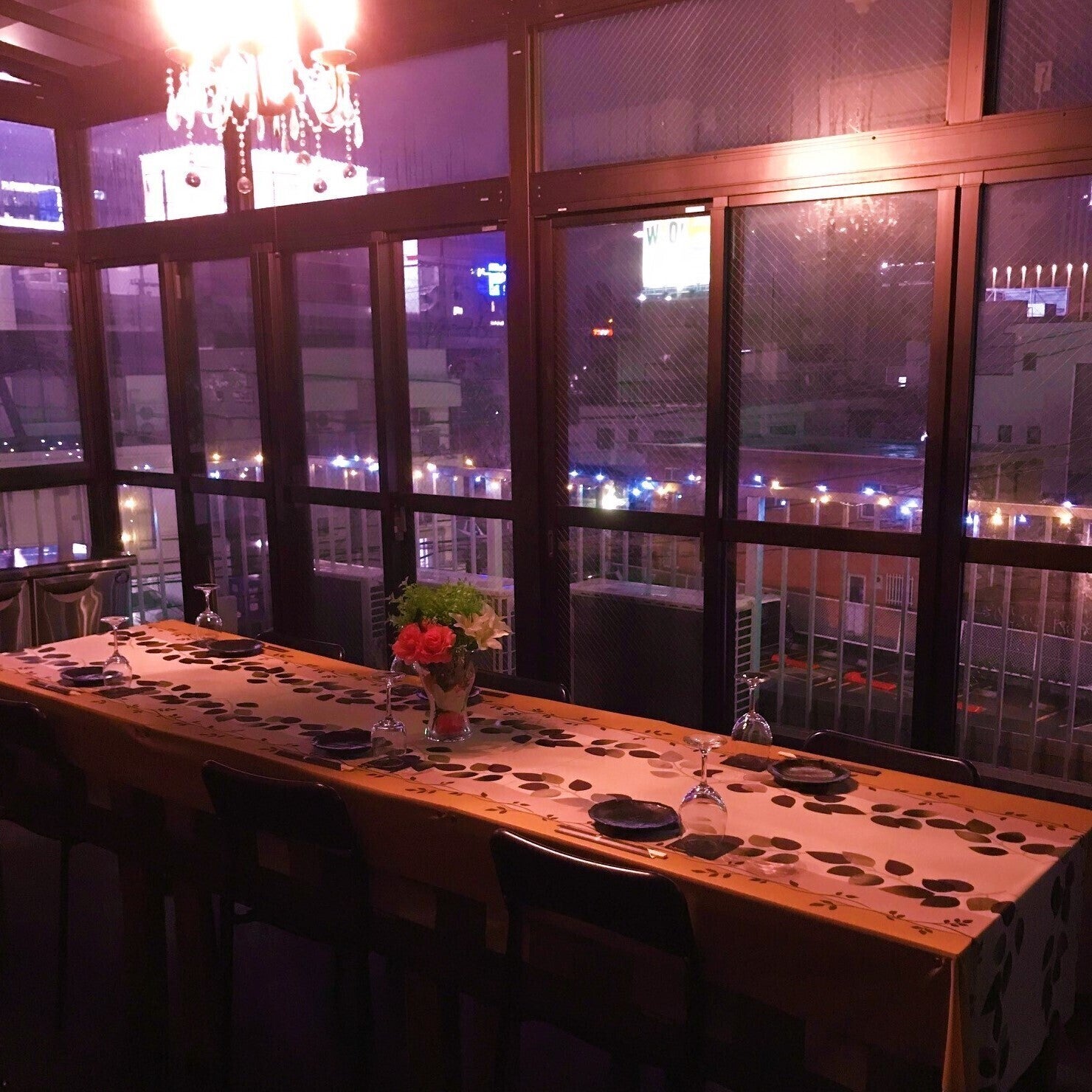 テラス個室に至っては東西南側の窓が開閉でき、手洗い完備しております。新幹線の姿も