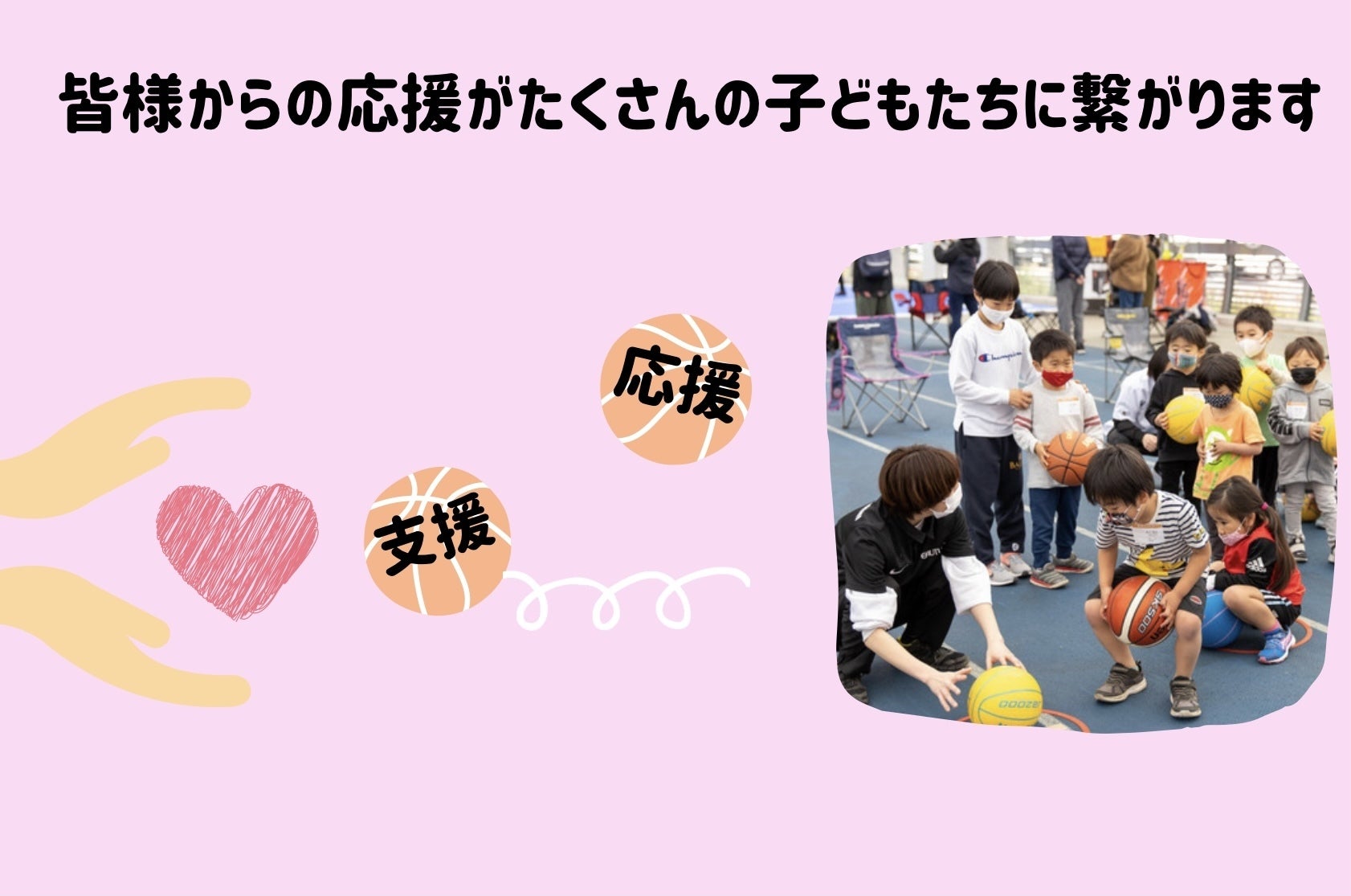 皆様からの支援で全国にスポーツとの出会いの場を作り、たくさんの子ども達にバスケットボールを届けていきます!
