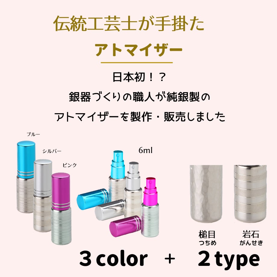 大きさは、6ml、4mlと 男女共に持ち運びやすいサイズ感と純銀ならではの高級感があります。