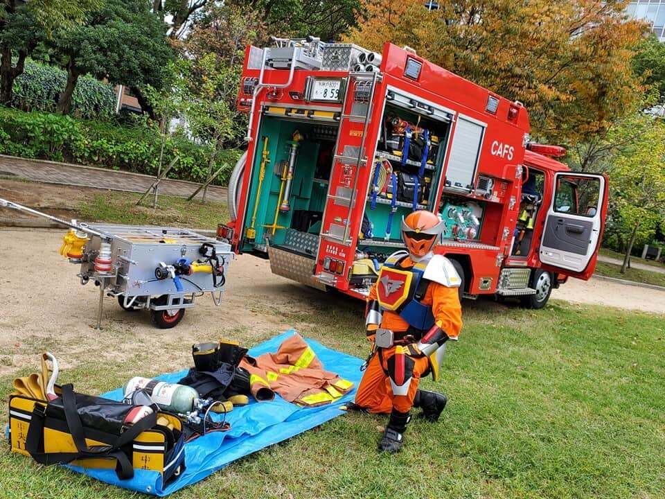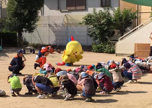●未来特救ゴッドイーグルの保育園で防災活動(シェイクアウト訓練)風景