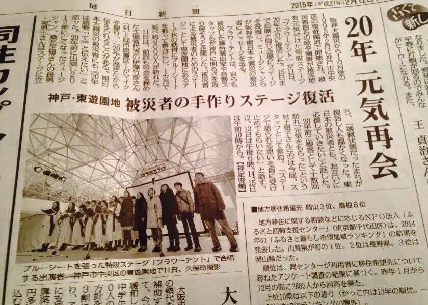 2020年は阪神淡路大震災から25年目の節目の年でした。阪神淡路大震災前日の25年前の1月16日は丁度仲間で集まり、公演をしていました。私は当時・・・イベント会社に勤務していましたが、被災し仕事も無くなり実家が全壊した事もあり、被災地で屋根の上にブルーシートを張る毎日でした。