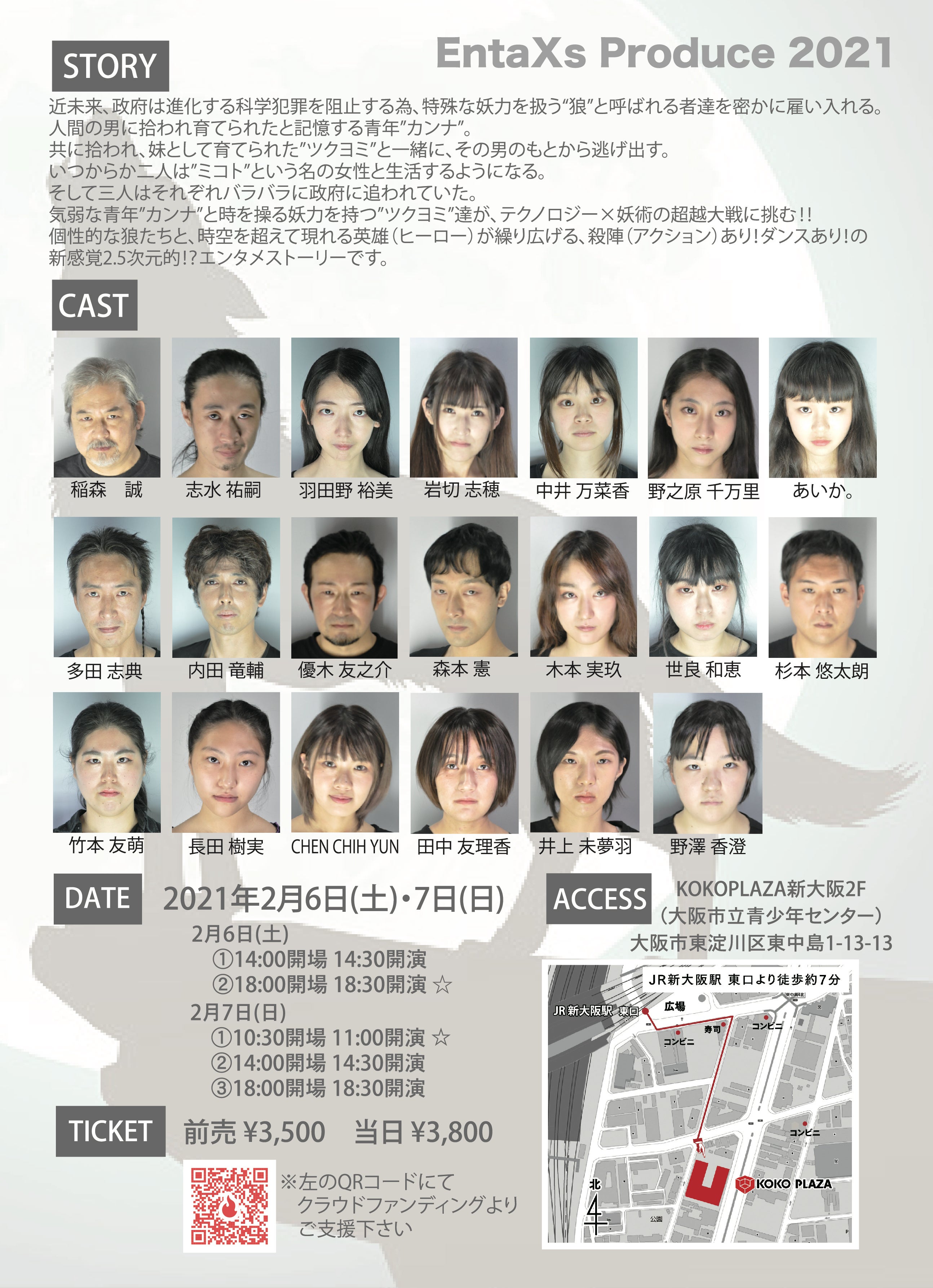 本プロジェクトは今年2020年2月に計画をし、コロナの影響で延び延びになっている企画で、大阪の演劇人×若手の2.5次元好き役者を目指す人×プロのアニソンシンガーで快く応援してくださる方々が一緒に・・まずは大阪で舞台演劇を実現させた上で、東京でも公演できる様に継続していきたいという企画です。そのプロジェクト名は”EntaXs”(エンタクロス)です。