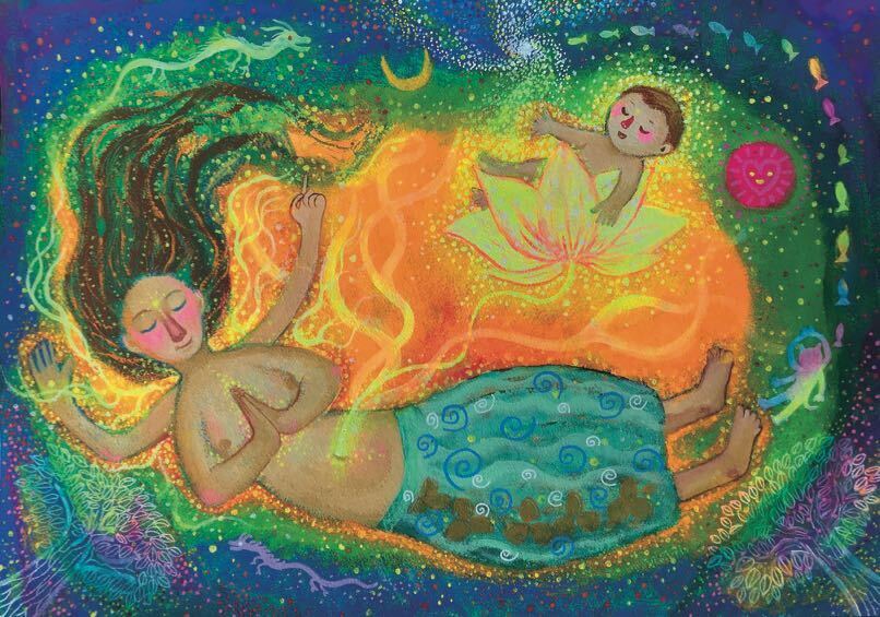お腹の中にいた記憶を歌っているように聞こえるのですが、