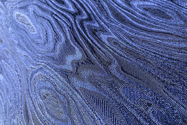 最大の特徴として、富士山の湧水を使用した【糸染め】があります。白い生地にプリントを行う織物とは違い、先に糸を染めてから織ることにより見る角度や光の当たり方で、全く違った表情を見せ高級感を演出します。一説では、糸染めに使われる富士山の湧水はおよそ数10年〜100年前に降った雨が富士山で濾過され湧き出ていると言われておりなんとも神秘的でロマンを感じさせる生地を織っている会社です。