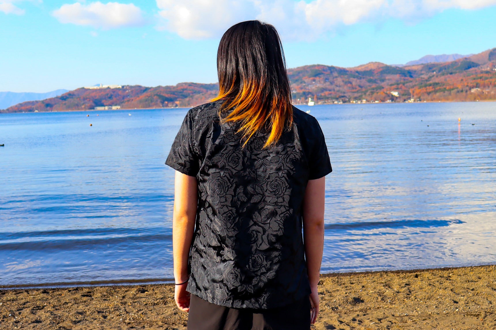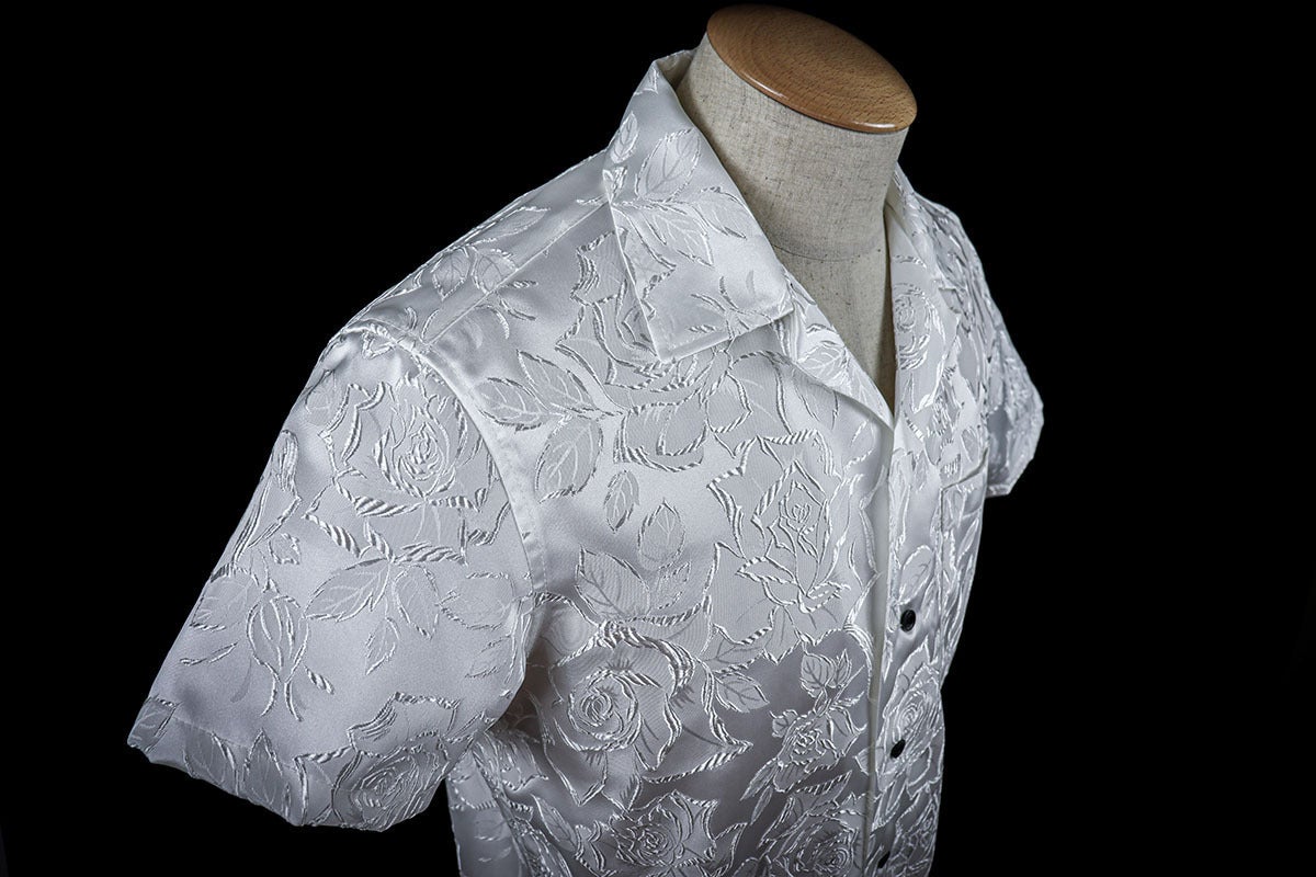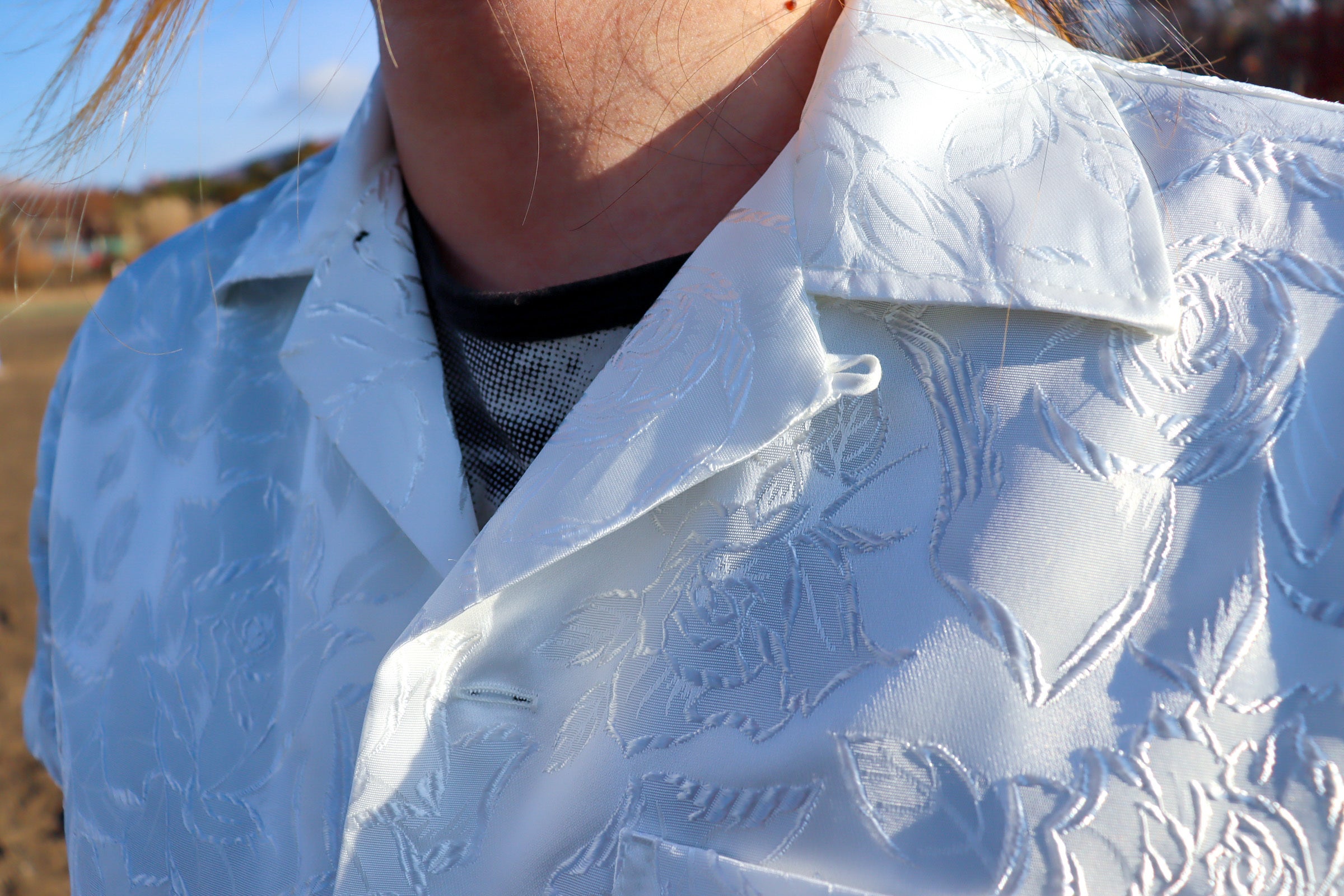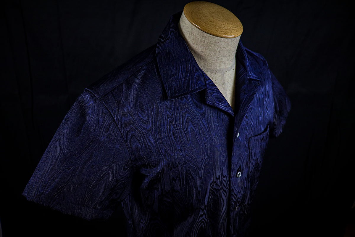 生地については地元企業【宮下織物株式会社】で織られた高級感あるジャカード生地を使い、縫製は地元で古くから個人でやられている縫製工場に依頼し地元の織物の良さハタオリ産地の良さを伝えるため”made in fujiyoshida"をコンセプトに生地から裁縫まで地元の長所を生かしたアロハシャツを作成しました。