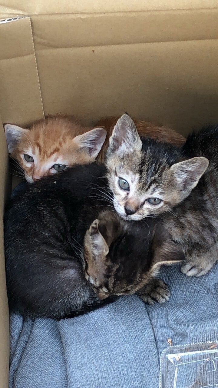 2020年4月15日、友人から「猫が捨てられている」と聞き、行くと3匹の仔猫が捨てられていました。