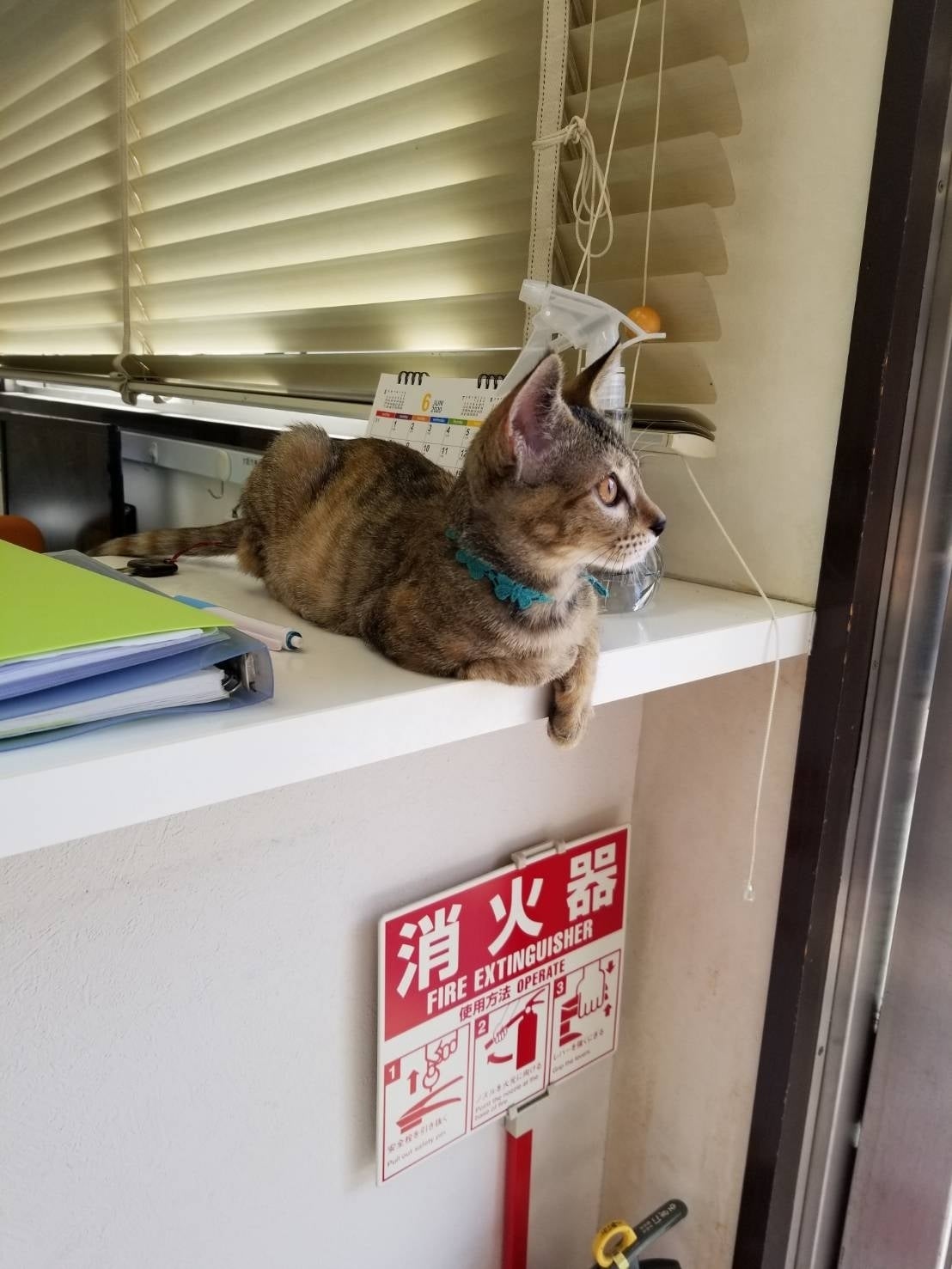 マープルは妻の勤務先に連れていってまして、職場の猫部屋で遊んでました。