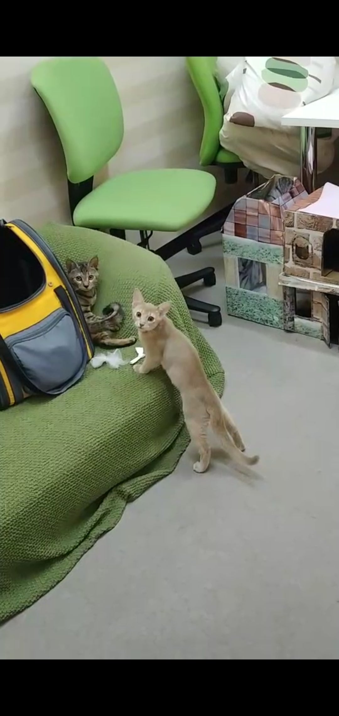 マープルは妻の勤務先に連れていってまして、職場の猫部屋で遊んでました。