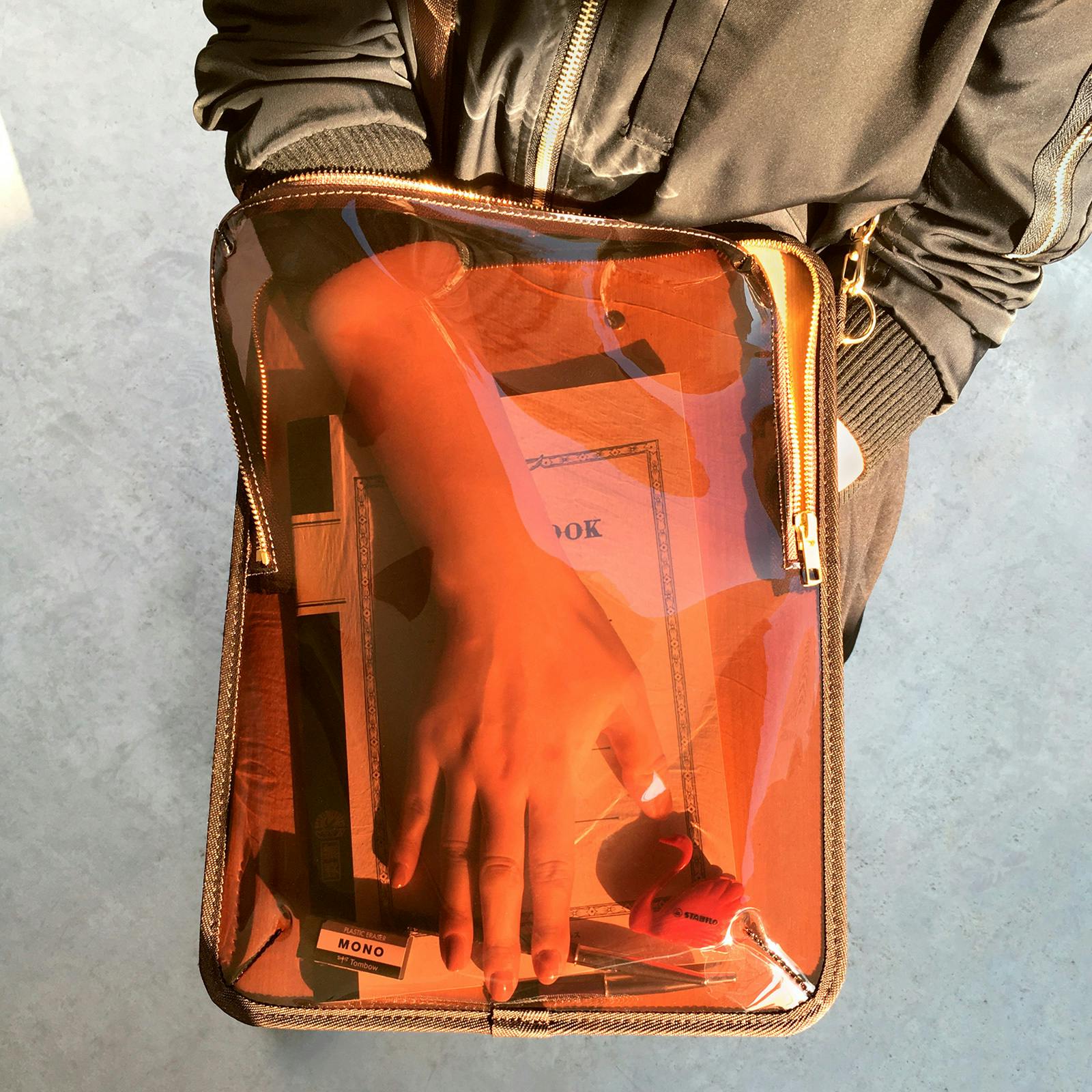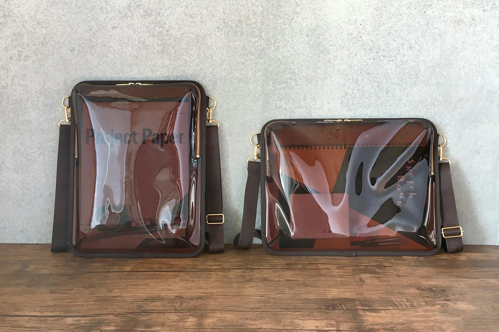 お気に入りの画材などをアピールした使い方もできますが、中身が見えすぎると普段使いがしにくいため、ほどよいスモーク感がある濃い目のブラウンをチョイスしました。