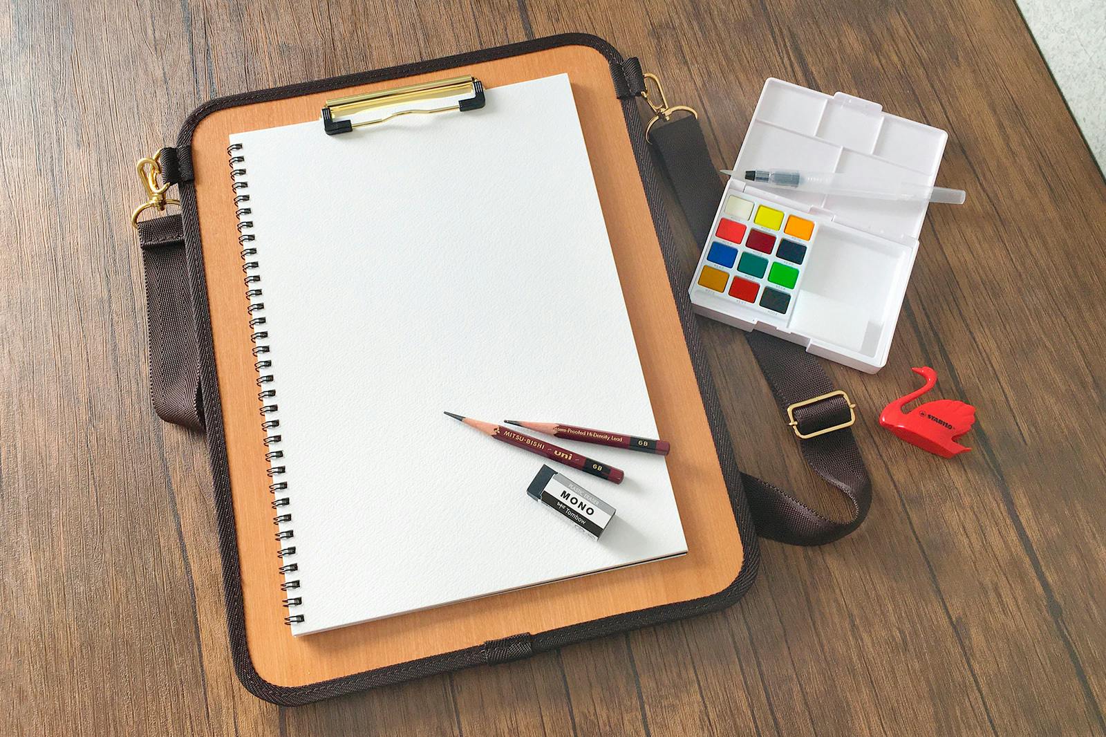プリントやノート、スケッチブック、折りたたんだ図面などを持ち歩く際に役立ちます。